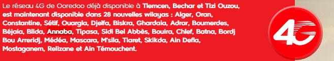 أما عن المتعامل أوريدو فتغطيته للولايات بالجيل الرابع تقدمت و غطت أكثر من 50 بالمئة من الولايات (31 ولاية) هي :